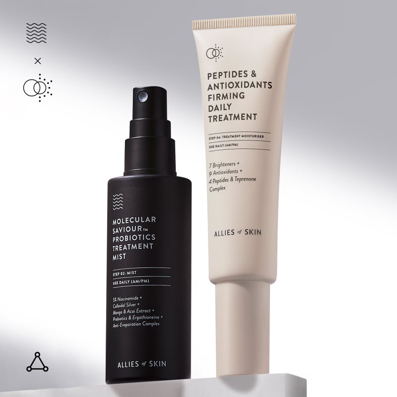 Allies of Skin Molecular Saviour Probiotics Treatment Mist, 50 ml, Pleťové mlhy pro ženy, Osvěžující pleťový sprej Allies of Skin Molecular Saviour probudí vaši pleť kdykoliv během dne a poskytne jí okamžitou úlevu. Vlastnosti: osvěžuje a rozjasňuje navrací pleti zdravý a mladistvý vzhled pomáhá předcházet dehydrataci pleti Jak používat: Nastříkejte na tvář přiměřené množství přípravku.