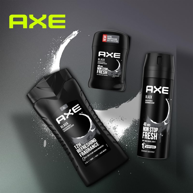 Axe Black Frozen Pear & Cedarwood, 50 ml, Deodoranty a antiperspiranty pro muže, Přípravek Axe Black Frozen Pear & Cedarwood je nezbytným pomocníkem pro každý den v boji proti pocení. Vlastnosti: chrání před nepříjemným zápachem předchází podráždění a zklidňuje pokožku nezanechává skvrny na oblečení poskytuje dlouhotrvající ochranu přípravek je speciálně vyvinut pro potřeby mužské pokožky Jak používat: Aplikujte na čistou a suchou pokožku podpaží. Vhodné pro každodenní použití.