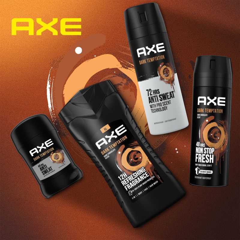 Axe Dark Temptation, 150 ml, Deodoranty a antiperspiranty pro muže, Propojte své vůně v harmonický celek. Deodorant Axe Dark Temptation uvolňuje stejné aroma jako vaše vůně ve flakonu a společně tak tvoří perfektní pár. Vlastnosti: dodává dlouhodobý pocit komfortu a čistoty chrání před nepříjemným zápachem doplňuje vůni ze stejné řady Jak používat: Vhodný pro každodenní použití. Můžete opakovat kdykoliv během dne.