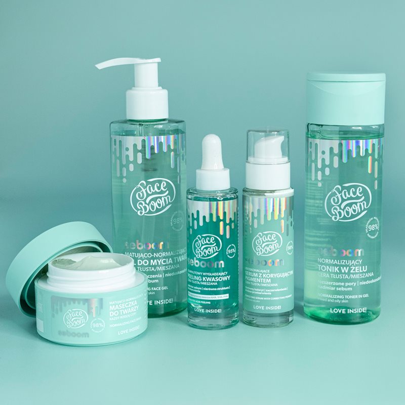 BodyBoom FaceBoom Seboom, 200 ml, Čištění pleti pro ženy, Než přistoupíte k pravidelné pečující rutině, je velmi důležité připravit pleť důkladným vyčištěním – bez něj by následující péče nebyla zdaleka tak účinná. Přípravek na čistění pleti BodyBoom FaceBoom pomůže z pleti odstranit veškeré nečistoty, které se za celý den nebo přes noc na pleti a v pórech usadily, zanechá tak pleť dokonale čistou a připravenou na jakoukoli další péči. Vlastnosti: jemně a důkladně myje celý obličej matuje pleť reguluje tvorbu kožního mazu příjemně osvěžuje Složení: obsahuje minimálně 98 % složek přírodního původu Jak používat: Naneste na vlhký obličej, jemně masírujte a poté pečlivě opláchněte vodou.