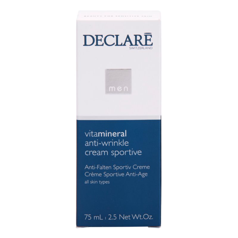 Declaré Men Vita Mineral, 75 ml, Péče o pleť pro muže, Vlastnosti: intenzivně hydratuje hloubkově pleť vyživuje redukuje vrásky a předchází jejich vzniku snadno se roztírá a rychle vstřebává omlazuje pleť a dodává jí energii přípravek je speciálně vyvinut pro potřeby mužské pleti Jak používat: Naneste na očištěnou pleť a vmasírujte krouživými pohyby.