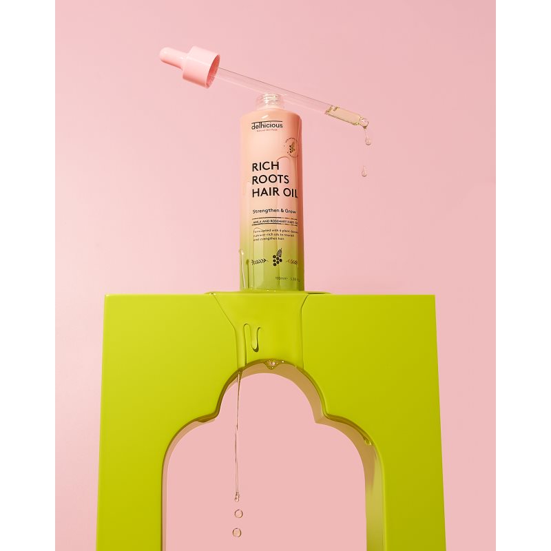 delhicious RICH ROOTS AMLA & ROSEMARY HAIR OIL, 100 ml, Masky na vlasy pro ženy, Máte pocit, že vaše vlasy potřebují intenzivnější péči než tu, kterou jim jsou schopné poskytnout kondicionéry či balzámy? Maska na vlasy delhicious RICH ROOTS AMLA & ROSEMARY HAIR OIL skvěle obohatí vaši pečující rutinu. Díky obsahu vysoké koncentrace vyživujících látek zaměřených na řešení konkrétních problémů navrátí vlasům vitalitu a krásu. Prostoupí hluboko do vlasových vláken, tam je posílí, intenzivně vyživí, podpoří jejich regeneraci a uhladí jejich povrch, takže zůstanou nádherně hebké na dotek, zářivě lesklé, ale i odolnější vůči poškození. Vlastnosti: zbavuje vlasy lupů působí do hloubky vlasového vlákna pomáhá stimulovat růst vlasů intenzivně hydratuje Složení: bez silikonů veganský produkt obsahuje minimálně 99 % složek přírodního původu Jak používat: Nechte chvíli působit dle doby uvedené na obalu a poté důkladně opláchněte.