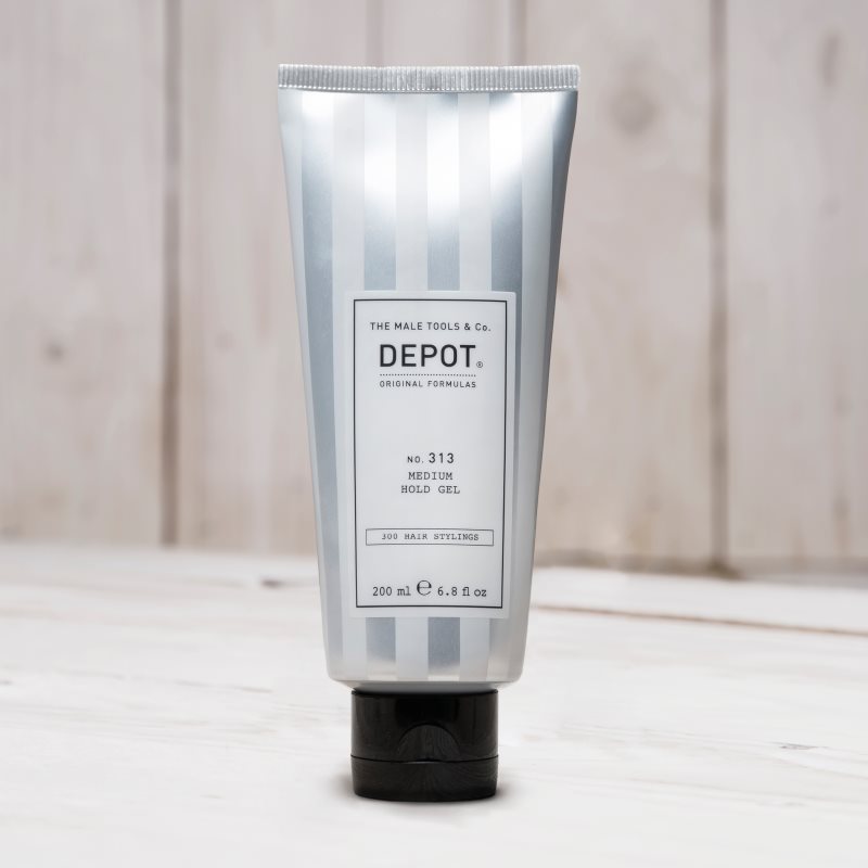 Depot No. 313 Medium Hold Gel, 200 ml, Styling pro muže, Kde pouhý hřeben, lak či tužidlo k vytvoření požadovaného účesu nestačí, gel na vlasy Depot No. 313 Medium Hold Gel pomůže. Umožní vám vytvarovat vlasy podle vašich představ a vytvořit tak dokonalý styling jako ze salonu. Zároveň se postará o silnou fixaci a zpevnění, takže každý pramen zůstane na svém místě a váš účes vydrží v podobě, jakou jste mu dodali, po celý den. Vlastnosti: poskytuje střední zpevnění má dlouhotrvající účinek nemastná textura mokrý efekt s leskem zajistí účes, který vydrží po celý den Složení: UV filtr Jak používat: Lze použít na suché i mokré vlasy. Naneste na vlasy a vytvořte požadovaný styling.