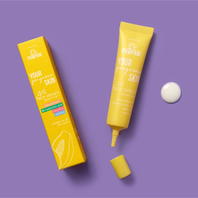 Dr. Pawpaw YOUR gorgeous SKIN, 30 ml, Pleťová séra pro ženy, Pleťové sérum Dr. Pawpaw YOUR gorgeous SKIN představuje přípravek s vysokým obsahem účinných látek. Díky tomu poskytuje vaší pleti tu nejluxusnější péči. Vlastnosti: účinně hydratuje a vyživuje projasňuje pomáhá vyhladit vrásky a jemné linky zpevňuje kontury obličeje odstraňuje známky únavy Složení: veganský produkt Jak používat: Přiměřené množství séra jemně vklepejte konečky prstů do čisté pleti. Aplikujte na tvář, krk i dekolt.