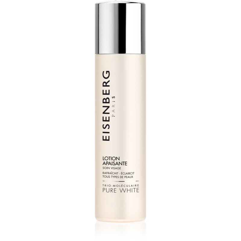 Eisenberg Pure White Lotion Apaisante, 200 ml, Pleťová tonika pro ženy, Stejně důležitý jako je samotný proces čištění pleti, je i přechod mezi čištěním a následující pečující rutinou. Jednotlivé kroky těchto procesů ideálním způsobem propojí a vaši celou rutinu obohatí pleťové tonikum Eisenberg Pure White Lotion Apaisante. Postará se o dočištění pleti, při kterém odstraní zbytky make-upu, nečistot, ale i čisticích přípravků, a zároveň bude pleť jemně tonizovat. Zanechá ji nejen dokonale čistou a připravenou na další péči, ale i osvěženou, zklidněnou a v rovnováze. Vlastnosti: zanechává pleť jemnou, svěží a zářivou okamžitě pleť zklidňuje hydratuje a vyživuje pleť Jak používat: Naneste na kosmetický tampon a krouživými pohyby pleť ošetřete.