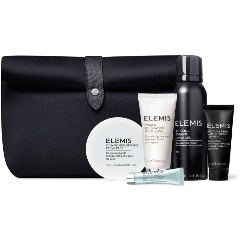 Elemis The Grooming Collection, Kosmetické sady pro muže, Udělejte radost kosmetickým setem Elemis The Grooming Collection , který je plný přípravků pro péči o mužskou pleť. Potěší každého moderního muže, který dbá o svůj zevnějšek. Sada obsahuje: Elemis Men Ice-Cool Foaming Shave Gel pěnivý gel na holení s chladivým účinkem 100 ml Elemis Dynamic Resurfacing Facial Pads peelingové pleťové tamponky pro rozjasnění a vyhlazení pleti 14 ks Elemis Dynamic Resurfacing Facial Wash čisticí gel s vyhlazujícím efektem 30 ml Elemis Men Pro-Collagen Marine Cream intenzivní hydratační krém proti vráskám pro muže 15 ml Elemis Pro-Collagen Vitality Eye Cream zpevňující oční krém 4 ml kosmetická taška 1 ks Vlastnosti: zajišťuje komplexní péči o mužskou pleť přípravky jsou speciálně vyvinuty pro potřeby mužské pleti mix produktů ke každodennímu používání ideální jako dárek Jak používat: Každý produkt z kosmetického setu používejte dle jeho návodu.