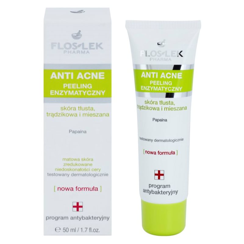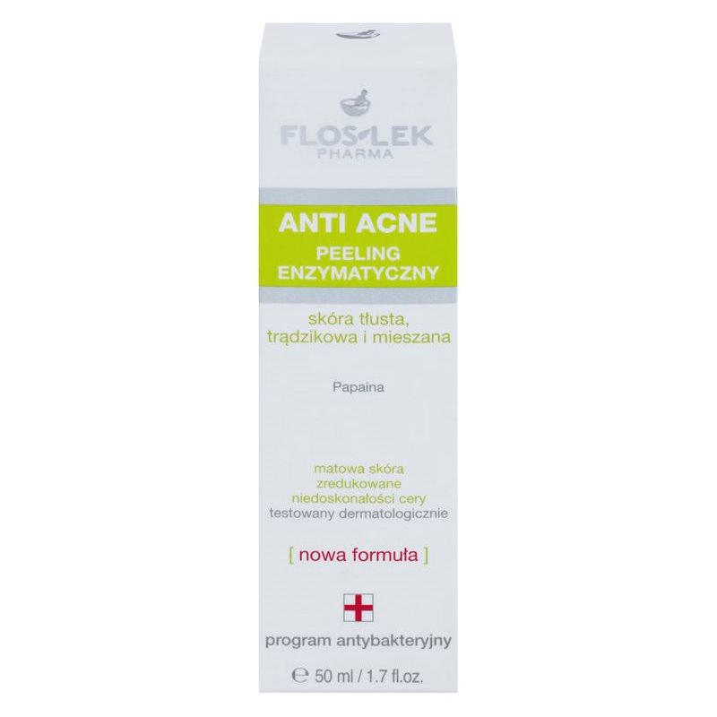 FlosLek Pharma Anti Acne, 50 ml, Enzymatické peelingy pro ženy, Díky svému hloubkovému působení a exfoliačním účinkům pomůže předcházet vzniku nedokonalostí pleti čisticí peeling FlosLek Pharma Anti Acne . Nejen že zbaví pleť veškerých nečistot, ale odstraní i odumřelé kožní buňky, které mají tendenci ucpávat póry, způsobovat černé tečky či mdlý tón a zašedlost pleti. Vlastnosti: účinně pleť regeneruje Jak používat: Naneste na vlhký obličej, jemně masírujte a poté pečlivě opláchněte vodou. Vyhněte se oblasti očí. Používejte 1–3× týdně.