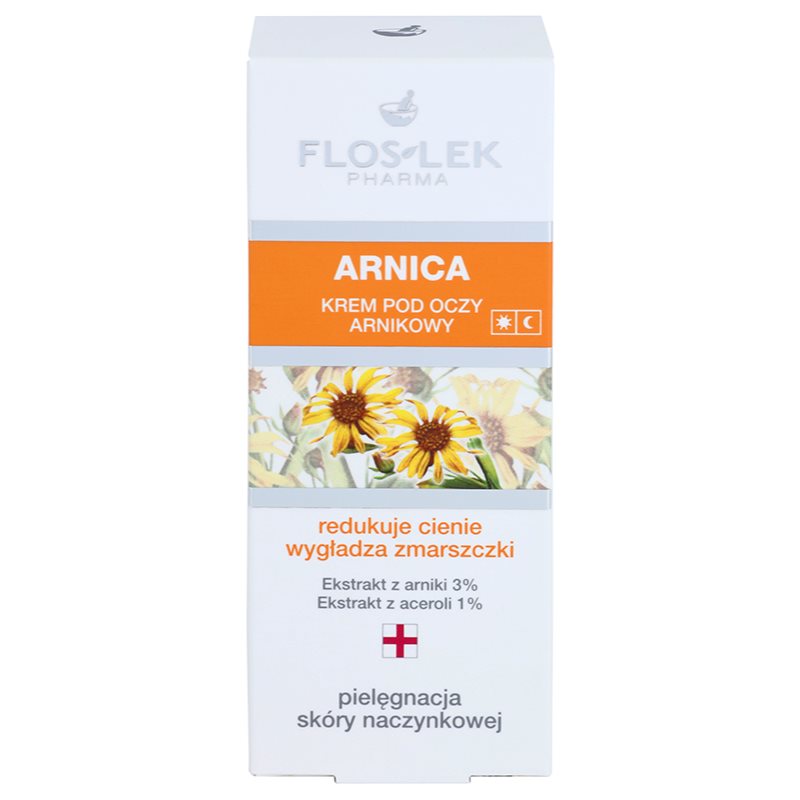 FlosLek Pharma Arnica, 30 ml, Oční krémy a gely pro ženy, Oční okolí je velmi citlivou oblastí, jeho kůže mimořádně tenká a křehká a díky tomu také náchylnější k projevům únavy a stárnutí. Vyžaduje proto i speciální péči se složením a konzistencí navrženými přesně pro její potřeby. Oční krém FlosLek Pharma Arnica si poradí se specifickými problémy očního okolí. Dodá pleti kolem očí potřebnou výživu a hydrataci, zlepší její kvalitu a navrátí jí vitalitu i svěží, odpočatý vzhled. Vlastnosti: odstraňuje otoky a tmavé kruhy pod očima vyhlazuje linky a jemné vrásky osvěžuje a zjemňuje oční okolí zklidňuje podráždění očního okolí Jak používat: Ráno a/nebo večer naneste přípravek kolem kontur očí lehkým poklepáváním, dokud se plně nevstřebá.