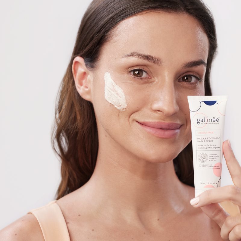 Gallinée SKIN CARE Face Mask & Scrub, 50 ml, Pleťové peelingy pro ženy, Pro účinnou exfoliaci předcházející vzniku nedokonalostí pleti nemusíte chodit do kosmetického salonu. Pleťový peeling Gallinée SKIN CARE Face Mask & Scrub se o ni postará v pohodlí vašeho domova. Nejen že odstraní odumřelé kožní buňky, které mají tendenci ucpávat póry, způsobovat černé tečky či mdlý tón a zašedlost pleti, ale také zbaví pleť nečistot a celkově ji vyhladí. Vlastnosti: exfoliační účinek vyhlazuje a zjemňuje pleť účinně pleť regeneruje stahuje rozšířené póry posiluje kožní bariéru regeneruje kožní bariéru hodí se pro citlivou pleť Složení: dermatologicky testováno Jak používat: Naneste na vlhký obličej, jemně masírujte a poté pečlivě opláchněte vodou. Používejte 1–3× týdně.