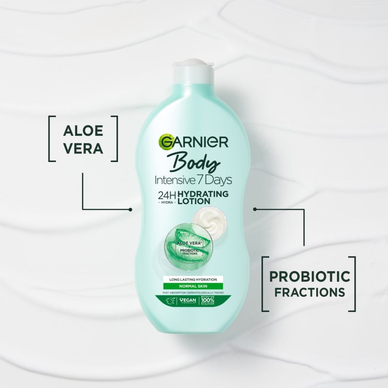 Garnier Intensive 7 Days, 400 ml, Tělová mléka pro ženy, Nejen pleť obličeje, ale i pokožka těla si zaslouží kromě pravidelného čištění také péči, která bude předcházet jejímu vysušení. Tělové mléko Garnier Intensive 7 Days se postará o dostatečnou hydrataci, vyživí pokožku a pomůže v ní uzamknout potřebnou vlhkost. Zanechá ji zvláčněnou, sametově hebkou a také chráněnou před projevy suchosti, jako je například pocit pnutí a diskomfortu či tvorba suchých kožních šupinek. Vlastnosti: hloubkově hydratuje pokožku dobře se nanáší, lehce se vstřebává nezanechává na pokožce mastný film Jak používat: Naneste na čistou pokožku a jemně vmasírujte do úplného vstřebání. Používejte ráno a/nebo večer na celé tělo.