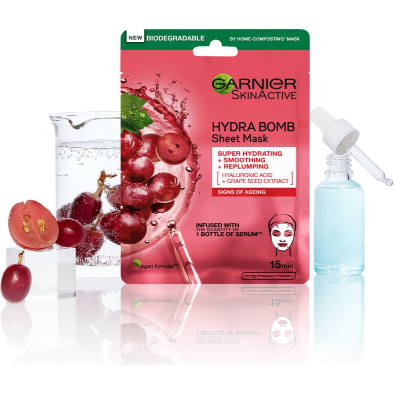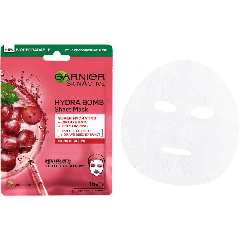 Garnier Skin Naturals Hydra Bomb, 28 g, Pleťové masky pro ženy, Máte pocit, že vaše pleť zrovna není úplně v kondici a potřebuje něco víc, než jen péči poskytnutou krémem? Pleťová maska Garnier Skin Naturals Hydra Bomb skvěle obohatí vaši pečující rutinu – pleť bude hýčkat a poskytne jí intenzivní péči, která přinese okamžité zlepšení jejího vzhledu. Vlastnosti: hloubkově hydratuje a intenzivně vyživuje navrací pleti pružnost a pocit pohodlí zanechává pleť na dotek hedvábně jemnou Jak používat: Masku opatrně vyjměte z obalu a umístěte na vyčištěný obličej. Nechte působit po dobu uvedenou na obalu. Nevstřebané sérum jemně vmasírujte do pleti nebo otřete vatovým tamponem.