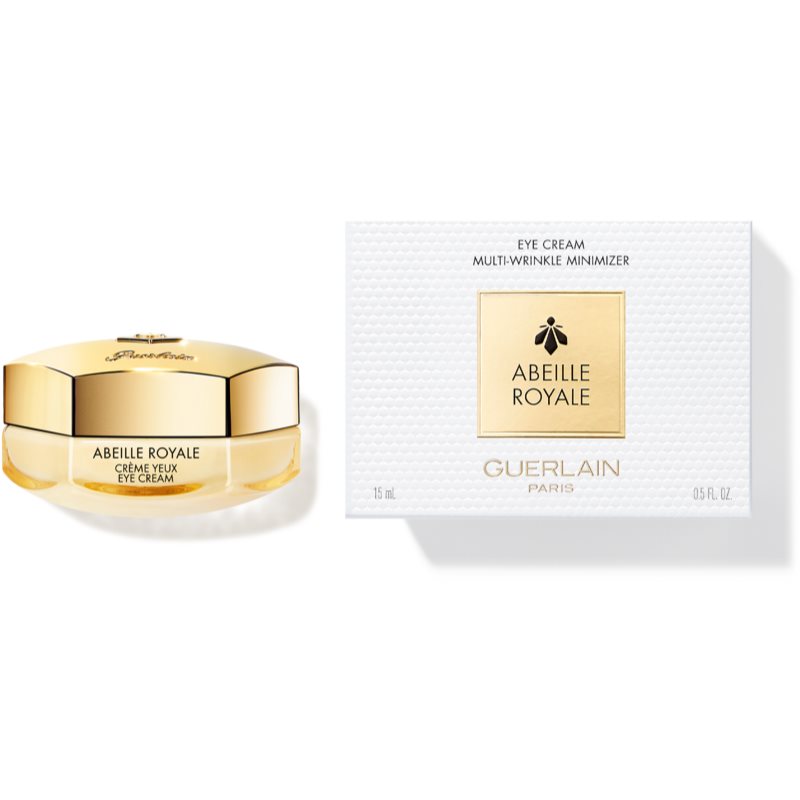 GUERLAIN Abeille Royale Multi-Wrinkle Minimizer Eye Cream, 15 ml, Oční krémy a gely pro ženy, Oční okolí je velmi citlivou oblastí, jeho kůže mimořádně tenká a křehká a díky tomu také náchylnější k projevům únavy a stárnutí. Vyžaduje proto i speciální péči se složením a konzistencí navrženými přesně pro její potřeby. Oční krém GUERLAIN Abeille Royale Multi-Wrinkle Minimizer Eye Cream si poradí se specifickými problémy očního okolí. Dodá pleti kolem očí potřebnou výživu a hydrataci, zlepší její kvalitu a navrátí jí vitalitu i svěží, odpočatý vzhled. Vlastnosti: hloubkově hydratuje vyhlazuje linky a jemné vrásky dodává očnímu okolí mladistvý vzhled rozjasňuje oční okolí Jak používat: Ráno a/nebo večer naneste přípravek kolem kontur očí lehkým poklepáváním, dokud se plně nevstřebá.
