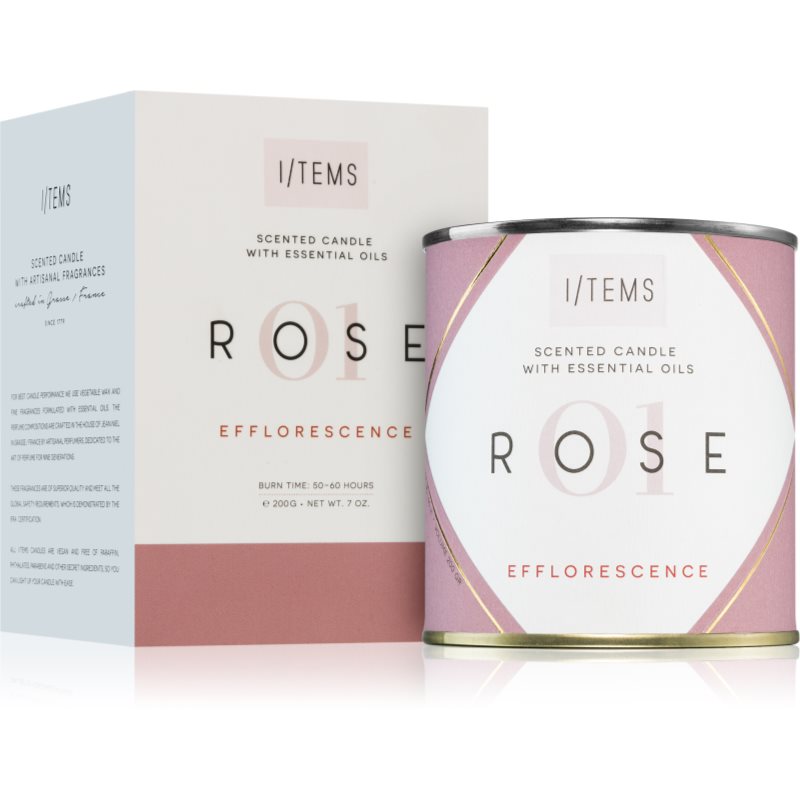 I/TEMS Essential 01 / Rose, 200 g, Vonné svíčky Vůně do bytu, Vonná svíčka I/TEMS Essential 01 / Rose provoní váš domov nádhernou vůní a vytvoří tak útulnou atmosféru, díky níž se budete vždy cítit skvěle. Vlastnosti: květinová vůně designový obal čisté hoření dlouhá doba hoření ručně vyrobeno Složení: s obsahem esenciálních olejů 100% přírodní složení neobsahuje parafín Jak používat: Svíčku pokládejte na dostatečně tepelně odolný povrch. Nenechávejte hořet déle než 4 hodiny. Nikdy nedovolte, aby svíčka dohořela až do úplného konce. Hořící svíčku nenechávejte nikdy bez dozoru a v blízkosti lehko vznětlivých předmětů. Uchovávejte mimo dosah dětí a domácích zvířat. Nechte vždy svíčku hořet minimálně po tu dobu, než se roztaví celá horní vrstva. Předejdete tak vzniku nežádoucí prohlubně ve vosku. Pro optimální hoření doporučejeme knot pravidelně zastřihávat na doporučenou délku.