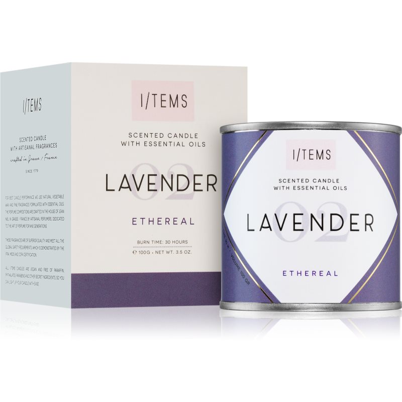 I/TEMS Essential 02 / Lavender, 100 g, Vonné svíčky Vůně do bytu, Vonná svíčka I/TEMS Essential 02 / Lavender provoní váš domov nádhernou vůní a vytvoří tak útulnou atmosféru, díky níž se budete vždy cítit skvěle. Vlastnosti: bylinné aroma designový obal dlouhá doba hoření ručně vyrobeno čisté hoření Složení: 100% přírodní složení s obsahem esenciálních olejů neobsahuje parafín Jak používat: Svíčku pokládejte na dostatečně tepelně odolný povrch. Nenechávejte hořet déle než 4 hodiny. Nikdy nedovolte, aby svíčka dohořela až do úplného konce. Hořící svíčku nenechávejte nikdy bez dozoru a v blízkosti lehko vznětlivých předmětů. Uchovávejte mimo dosah dětí a domácích zvířat. Nechte vždy svíčku hořet minimálně po tu dobu, než se roztaví celá horní vrstva. Předejdete tak vzniku nežádoucí prohlubně ve vosku. Pro optimální hoření doporučejeme knot pravidelně zastřihávat na doporučenou délku.