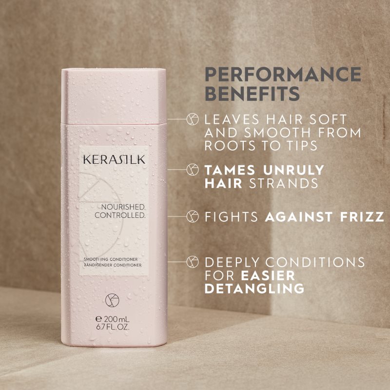 KERASILK Essentials Smoothing Condicioner, 200 ml, Kondicionéry na vlasy pro ženy, Při mytí vlasů šampon otevírá povrchovou vlasovou strukturu – kutikulu. Proto je důležité dodat po mytí vlasům péči, která kutikulu opět uzavře. A právě o to se postará kondicionér KERASILK Essentials Smoothing Condicioner. Kromě uzavření vlasových vláken zajistí jejich výživu, hydrataci a změkčení, bez čehož se krásné, lesklé a zdravé vlasy neobejdou. Ochrání je před mechanickým poškozením a vysušením, dále vyhladí jejich povrch a pomůže je zjemnit, což usnadní jejich rozčesávání a další úpravy. Vlastnosti: uhlazuje a působí proti krepatění poskytuje potřebnou hydrataci zajišťuje vlasům oslnivý lesk Složení: bez silikonů bez sulfátů neobsahuje umělá barviva bez minerálních olejů veganský produkt Jak používat: Aplikujte na šamponem umyté vlasy. Nechte chvíli působit a poté důkladně opláchněte.