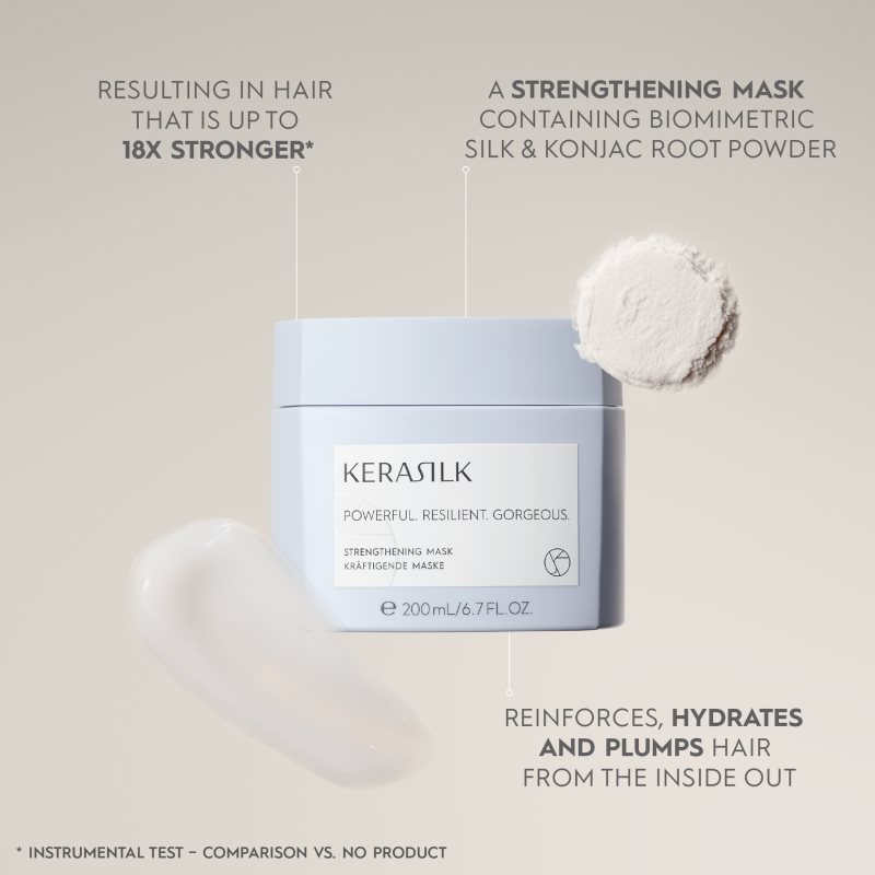 KERASILK Specialists Strengthening Mask, 200 ml, Masky na vlasy pro ženy, Máte pocit, že vaše vlasy potřebují intenzivnější péči než tu, kterou jim jsou schopné poskytnout kondicionéry či balzámy? Maska na vlasy KERASILK Specialists Strengthening Mask skvěle obohatí vaši pečující rutinu. Díky obsahu vysoké koncentrace vyživujících látek zaměřených na řešení konkrétních problémů navrátí vlasům vitalitu a krásu. Prostoupí hluboko do vlasových vláken, tam je posílí, intenzivně vyživí, podpoří jejich regeneraci a uhladí jejich povrch, takže zůstanou nádherně hebké na dotek, zářivě lesklé, ale i odolnější vůči poškození. Vlastnosti: intenzivně hydratuje regeneruje vlasy po celé jejich délce pečuje o délky oslabených vlasů dodává vlasům krásnou vůni Složení: bez silikonů veganský produkt Jak používat: Nechte chvíli působit dle doby uvedené na obalu a poté důkladně opláchněte.