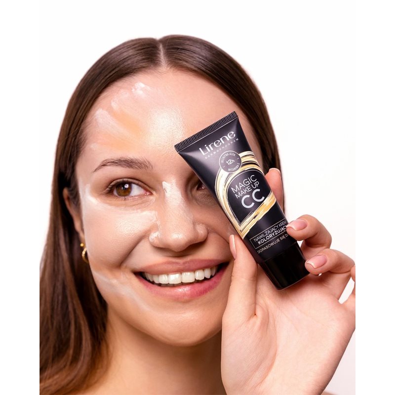 Lirene Magic, 30 ml, Tónovací krémy pro ženy, Make-up Lirene Magic sjednotí odstín vaší pleti a zakryje její drobné nedokonalosti. Vlastnosti: hydratuje sjednocuje barevný tón výborná krycí schopnost dlouhotrvající efekt sjednocuje barevný tón pleti přizpůsobí se barvě pleti rozjasňuje pleť Jak používat: Jemnými tahy aplikujte make-up na obličej. Buď prsty, houbičkou nebo štětcem rovnoměrně a důkladně rozetřete.
