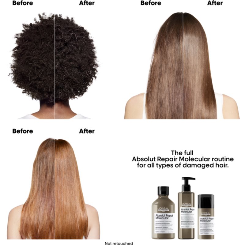 L’Oréal Professionnel Serie Expert Absolut Repair Molecular, 300 ml, Šampony pro ženy, Abyste dokázali udržet své vlasy zdravé, lesklé a vitální, je důležité jim věnovat správnou péči. A ta začíná pravidelným mytím vlasů. Šampon L’Oréal Professionnel Serie Expert Absolut Repair Molecular pomůže efektivně odstranit z vlasů i pokožky hlavy veškeré nečistoty, mastnotu i zbytky stylingových a jiných kosmetických produktů. Vám dodá pocit svěžesti a čistoty, vaše vlasy a pokožku hlavy navíc ideálním způsobem připraví na další péči a podpoří účinky obsažených aktivních látek. Vlastnosti: regeneruje a vyživuje vlasy posiluje vlasová vlákna pečuje o délky oslabených vlasů zesiluje vlasové konečky dodává lesk a objem působí proti krepatění vlasů Jak používat: Naneste přiměřené množství šamponu na mokré vlasy. Napěňte a důkladně opláchněte. Pro optimální výsledný efekt, pokračujte vlasovou péčí ze stejné řady.