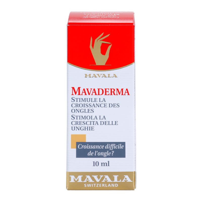 Mavala Nail Care Mavaderma, 10 ml, Péče o nehty pro ženy, Přípravek Mavala Nail Care zajistí vašim nehtům profesionální péči. Vlastnosti: podporuje zdravý růst nehtů chrání proti praskání, lámání a třepení nehtů vyživuje nehty a nehtovou kůžičku Složení: veganský produkt Jak používat: Používejte pravidelně.