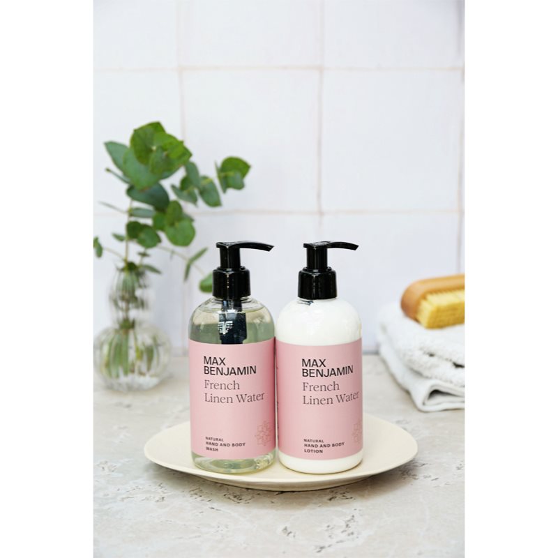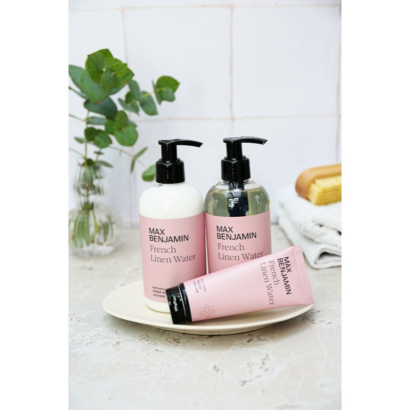 MAX Benjamin French Linen Water, 1 ks, Kosmetické sady pro ženy, Vše pro krásně vypadající pokožku v jednom balení. Kosmetická sada MAX Benjamin French Linen Water udělá radost vám nebo jako dárek potěší vaše blízké. Sada obsahuje: tekuté mýdlo na ruce a tělo 300 ml mléko na ruce a tělo 300 ml Vlastnosti: hloubkově hydratuje pokožku zanechává pokožku na dotek sametově jemnou účinně myje pokožku rukou příjemně voní pro dokonale jemnou a vláčnou pokožku Složení: veganský produkt obsahuje minimálně 95 % složek přírodního původu neobsahuje SLS Jak používat: Každý produkt z kosmetického setu používejte dle jeho návodu na etiketě.