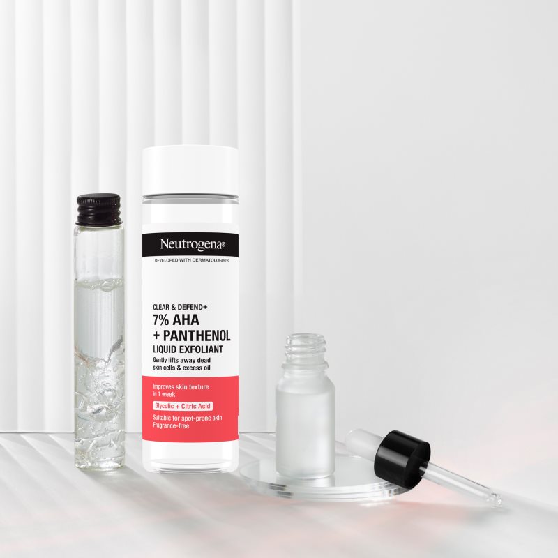 Neutrogena Clear & Defend+, 125 ml, Chemické peelingy pro ženy, Pro účinnou exfoliaci předcházející vzniku neokonalostí pleti nemusíte chodit do kosmetického salonu. Pleťový peeling Neutrogena Clear & Defend+ se o ni postará v pohodlí vašeho domova. Nejen že odstraní odumřelé kožní buňky, které mají tendenci ucpávat póry, způsobovat černé tečky či mdlý tón a zašedlost pleti, ale také zbaví pleť nečistot a celkově ji vyhladí. Vlastnosti: vyhlazuje a zjemňuje pleť odstraňuje odumřelé kožní buňky zbavuje černých teček a přebytečného mazu rozjasňuje a sjednocuje pleť Jak používat: Před použitím důkladně protřepejte. Jemnými tahy tamponkem po obličeji ošetřete předem vyčištěnou pleť. Používejte 1–3× týdně.