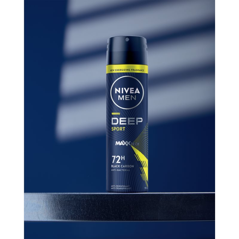 NIVEA MEN Deep Sport, 150 ml, Deodoranty a antiperspiranty pro muže, Přípravek NIVEA Deep Sport je nezbytným pomocníkem pro každý den v boji proti pocení. Vlastnosti: účinně chrání proti pocení chrání před nepříjemným zápachem zanechává dlouhodobý pocit svěžesti Jak používat: Aplikujte na čistou a suchou pokožku podpaží.