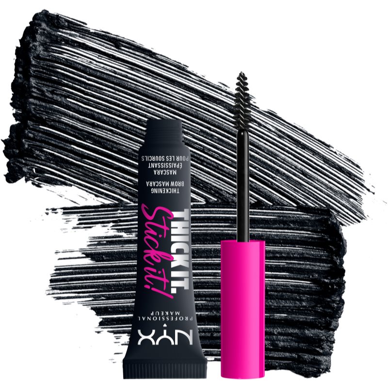 NYX Professional Makeup Thick it Stick It Brow Mascara, 7 ml, Řasenky a gely na obočí pro ženy, Pěkně upravené obočí podtrhne vaši přirozenou krásu, protože orámuje celý obličej. Pro jeho dokonalý vzhled přitom stačí málo. Gel na obočí NYX Professional Makeup Thick it Stick It Brow Mascara ho zvýrazní a zafixuje v jediném kroku. Díky aplikačnímu a zároveň stylingovému kartáčku pomůže upravit a nadzvednout jednotlivé chloupky obočí a současně je v této podobě spolehlivě zafixuje na mnoho hodin. Po zaschnutí zůstane tento gel na svém místě, nebude se drolit, ani se nikam neobtiskne. Vlastnosti: včetně praktického kartáčku dlouhotrvající efekt zvýrazňuje chloupky obočí přirozeným odstínem obsahuje jemná vlákna pro efekt hustšího obočí Složení: veganský produkt Jak používat: Chloupky obočí jednoduše několikrát pročešte a současně upravte do požadovaného tvaru.