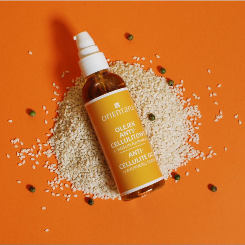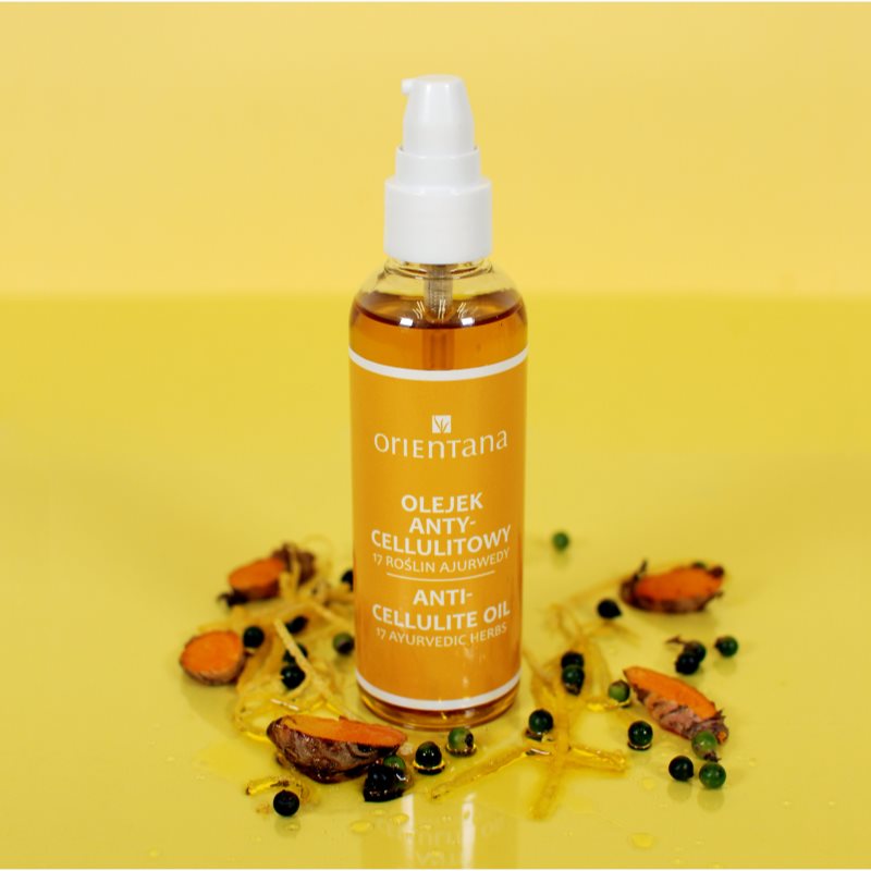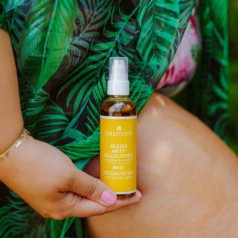 Orientana 17 Ayurvedic Herbs Anti-Cellulite Oil, 100 ml, Tělové oleje pro ženy, Lámete si hlavu s tím, jak vyzrát na pomerančovou kůži na stehnech, hýždích či třeba pažích? Už nemusíte. Bojovat s nerovnostmi pokožky vám pomůže přípravek _ZNACKA__ 17 Ayurvedic Herbs Anti-Cellulite Oil, který zmírní projevy celulitidy, účinně vyhladí nerovnou texturu a dodá pokožce pevnější vzhled. Zbavte se nevzhledných dolíčků jednou provždy a navraťte své pokožce přirozenou krásu. Vlastnosti: redukuje celulitidu a zpevňuje pokožku zpevňuje povolenou kůži Složení: veganský produkt Jak používat: Přípravek aplikujte na problematické partie těla (stehna, boky, zadeček a bříško). Vmasírujte krouživými pohyby do pokožky a nechte vstřebat.