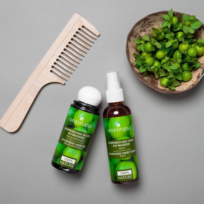 Orientana Ayurvedic Hair Oil Amla & Bhringraj, 105 ml, Klasické vlasové oleje pro ženy, Máte pocit, že vaše vlasy potřebují něco víc, než jen péči poskytnutou šamponem, kondicionérem či třeba maskou? Klasický vlasový olej Orientana Ayurvedic Hair Oil Amla & Bhringraj skvěle obohatí vaši pečující rutinu – dodá vlasům extra dávku výživy, pomůže obnovit jejich pružnost, ohebnost a celkovou flexibilitu, podpoří jejich regeneraci a v neposlední řadě se postará o vyhlazení jejich povrchu. Výsledkem tak budou hebčí, jemnější a zdravě lesklé vlasy s menší tendencí ke krepatění. Vlastnosti: dodává vlasům lesk působí proti stárnutí vlasů výrazně vlasy regeneruje a chrání zvýrazňuje a podporuje barevný odstín vlasů Složení: bez silikonů bez sulfátů