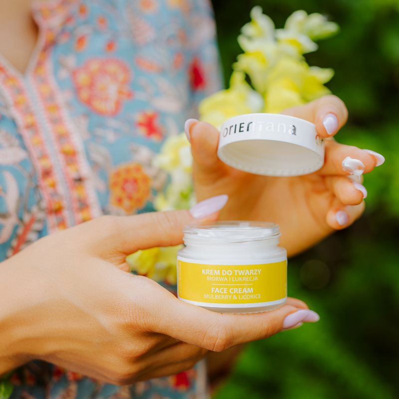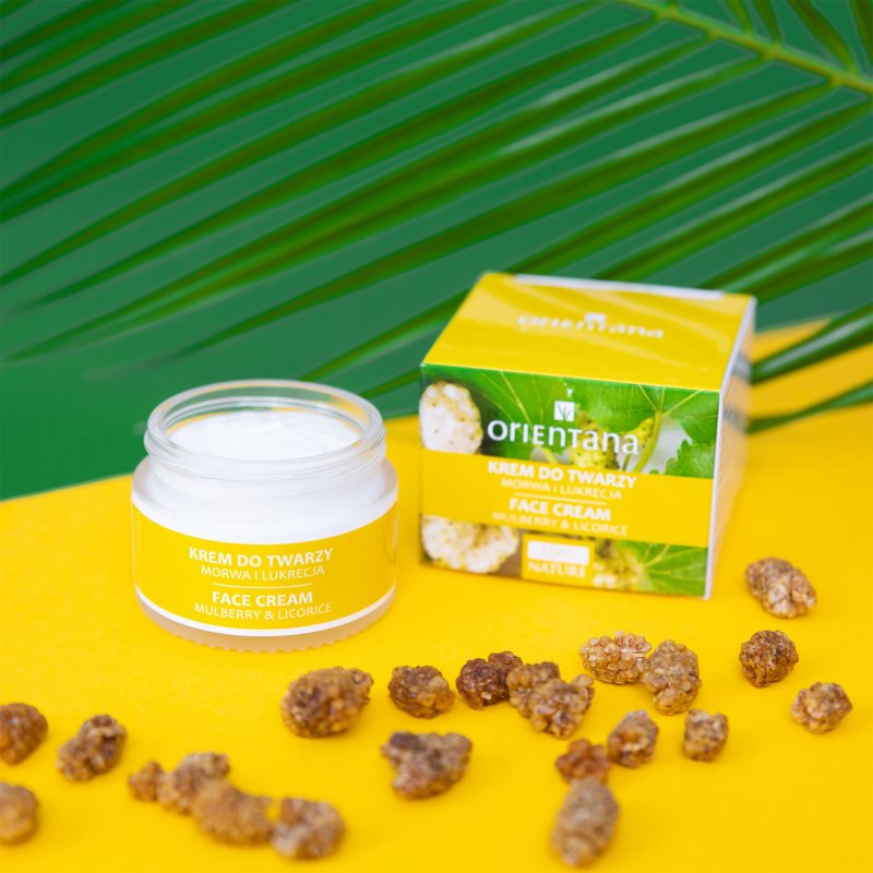 Orientana Mulberry & Licorice Face Cream, 50 g, Pleťové krémy pro ženy, Nechcete podcenit péči o pleť? Používejte každý den pleťový krém – je to základ péče o pleť, bez kterého se neobejde běžná kosmetická rutina, ať už je zaměřená na jakýkoli typ pleti s jakýmikoli potřebami. Pleťový krém Orientana Mulberry & Licorice Face Cream podpoří přirozené kožní funkce, pomůže udržet pleť hydratovanou a v rovnováze a přispěje k celkově zdravějšímu vzhledu. Vlastnosti: sjednocuje tón pleti redukuje vrásky a předchází jejich vzniku zanechává pleť na dotek sametově jemnou zklidňuje podráždění a začervenání Složení: veganský produkt Jak používat: Naneste na očištěnou pleť a vmasírujte krouživými pohyby. Aplikujte na tvář, krk i dekolt. Používejte každé ráno a/nebo večer.