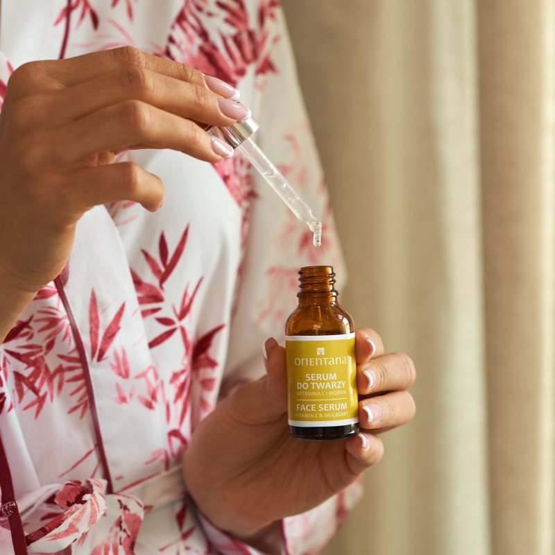 Orientana Vitamin C & Mulberry Face Serum, 30 ml, Pleťová séra pro ženy, Máte pocit, že vaše pleť potřebuje něco víc, než jen péči poskytnutou krémem? Pleťové sérum Orientana Vitamin C & Mulberry Face Serum skvěle obohatí vaši pečující rutinu – pleť bude hýčkat a poskytne jí intenzivní péči. Díky vysoké koncentraci aktivně působících látek bude jeho účinek na pleť mnohonásobně výraznější a rychlejší než u pleťového krému. Aplikaci vám navíc usnadní jeho tekutá textura, která se velmi dobře vstřebá do pleti. Vlastnosti: sjednocuje barevný tón pleti obnovuje pružnost pleti navrací pleti svěžest a mladistvou krásu účinně hydratuje a vyživuje projasňuje zjemňuje Složení: veganský produkt Jak používat: Přiměřené množství séra jemně vklepejte konečky prstů do čisté pleti.