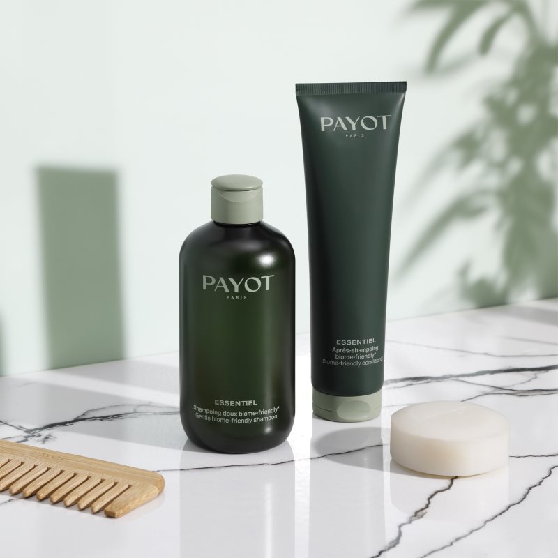 Payot Essentiel Biome-Friendly Conditioner, 150 ml, Kondicionéry na vlasy pro ženy, Při mytí vlasů šampon otevírá povrchovou vlasovou strukturu – kutikulu. Proto je důležité dodat po mytí vlasům péči, která kutikulu opět uzavře. A právě o to se postará kondicionér Payot Essentiel Biome-Friendly Conditioner. Kromě uzavření vlasových vláken zajistí jejich výživu, hydrataci a změkčení, bez čehož se krásné, lesklé a zdravé vlasy neobejdou. Ochrání je před mechanickým poškozením a vysušením, dále vyhladí jejich povrch a pomůže je zjemnit, což usnadní jejich rozčesávání a další úpravy. Vlastnosti: usnadňuje rozčesávání a následnou úpravu poskytuje potřebnou hydrataci zlepšuje strukturu vlasů zajišťuje vlasům oslnivý lesk Složení: obsahuje minimálně 91 % složek přírodního původu Jak používat: Naneste na umyté vlasy do délek a konečků. Poté důkladně opláchněte vodou.