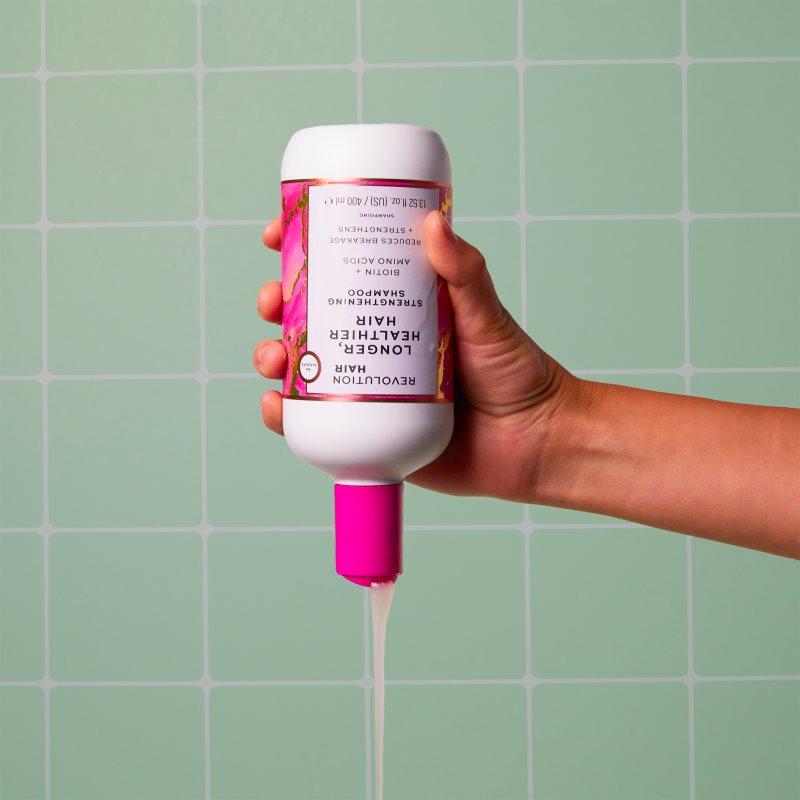 Revolution Haircare Longer, Healthier, 400 ml, Šampony pro ženy, Šampon Revolution Haircare Longer, Healthier efektivně čistí pokožku hlavy, důkladně myje vlasy a navrací jim přirozenou krásu. Vlastnosti: myje vlasy a čistí pokožku hlavy posiluje vlasová vlákna zanechává vlasy hebké snižuje lámavost vlasů pečuje o délky oslabených vlasů Složení: veganský produkt Jak používat: Naneste přiměřené množství šamponu na mokré vlasy. Napěňte a důkladně opláchněte.