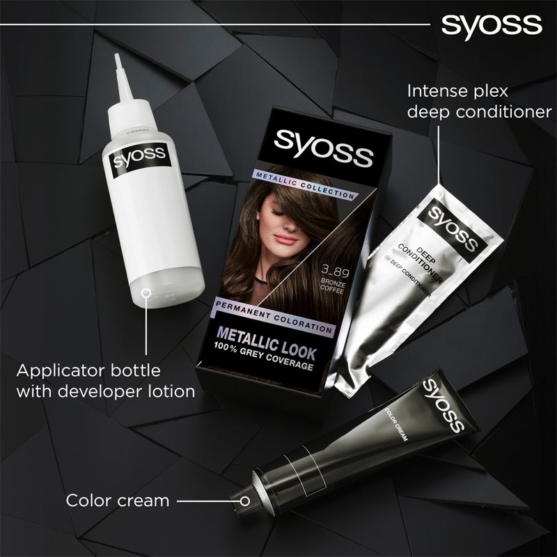 Syoss Color Metallic Collection, 1 ks, Permanentní barvy na vlasy pro ženy, Chcete získat dlouhotrvající zářivý barevný odstín, zakrýt šediny nebo úplně změnit barvu svých vlasů? Permanentní barva na vlasy Syoss Color Metallic Collection vám přinese kýžený výsledek. Dodá vlasům intenzivní barevný odstín a zářivý lesk, na rozdíl od semi-permanentních barev, přelivů a tónovacích šamponů se však nebude postupně vymývat ani blednout, takže perfektně nabarvené vám vlasy vydrží po dlouhé týdny. Složení s pigmenty pronikne hluboko do vlasového vlákna, což zaručí dlouhotrvající barevný efekt, pomalé vymývání a dokonalé krytí například šedin. Ať už je vaším cílem sjednotit přirozenou barvu vlasů, nebo ji zcela změnit, tato permanentní barva vás nezklame. Vlastnosti: snadná a rychlá aplikace v pohodlí domova vytváří efekt tón v tónu barva zůstává dlouho krásná a sytá kryje šediny má dlouhotrvající efekt Jak používat: Používejte na základě instrukcí v balení.