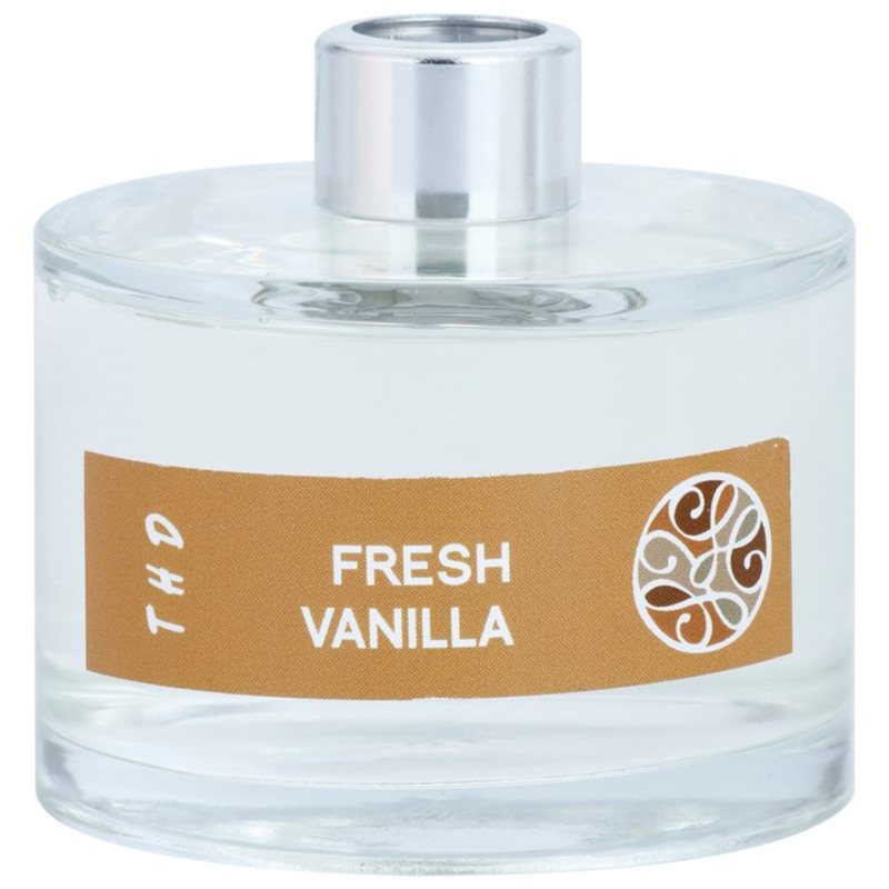 THD Platinum Collection Fresh Vanilla, 100 ml, Aroma difuzéry s náplní Vůně do bytu, Aroma difuzér THD Platinum Collection Fresh Vanilla představuje příjemný způsob provonění vašeho interiéru. Aroma difuzér obsahuje náplň, která se pomocí vložených tyčinek postupně odpařuje do vzduchu, a tím vytváří v místnosti velice útulné aroma. Vlastnosti: sladké aroma Jak používat: Intenzitu vůně ve vašem interiéru také můžete zvýšit občasným otáčením namočených tyčinek. Tento aroma difuzér se dodává včetně náplně. Uchovávejte mimo dosah dětí. Pokud se náplň difuzéru střetne s kůží, okamžitě ji omyjte velkým množstvím vody a mýdla. Při zasáhnutí očí několik minut vyplachujte vodou.