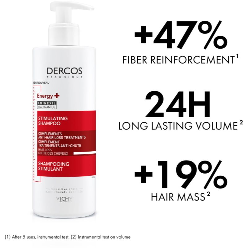 Vichy Dercos Energising, 400 ml, Šampony pro ženy, Abyste dokázali udržet své vlasy zdravé, lesklé a vitální, je důležité jim věnovat správnou péči. A ta začíná pravidelným mytím vlasů. Šampon Vichy Dercos Energising pomůže efektivně odstranit z vlasů i pokožky hlavy veškeré nečistoty, mastnotu i zbytky stylingových a jiných kosmetických produktů. Vám dodá pocit svěžesti a čistoty, vaše vlasy a pokožku hlavy navíc ideálním způsobem připraví na další péči a podpoří účinky obsažených aktivních látek. Vlastnosti: myje vlasy a čistí pokožku hlavy zabraňuje předčasnému vypadávání vlasů posiluje vlasová vlákna Složení: produkt je hypoalergenní Jak používat: Naneste přiměřené množství šamponu na mokré vlasy. Napěňte a důkladně opláchněte. Pro optimální výsledný efekt, pokračujte vlasovou péčí ze stejné řady.