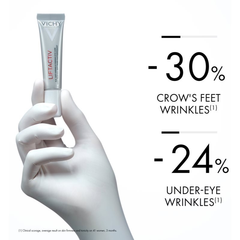 Vichy Liftactiv Supreme, 15 ml, Oční krémy a gely pro ženy, Oční okolí je velmi citlivou oblastí, jeho kůže mimořádně tenká a křehká a díky tomu také náchylnější k projevům únavy a stárnutí. Vyžaduje proto i speciální péči se složením a konzistencí navrženými přesně pro její potřeby. Oční krém Vichy Liftactiv Supreme si poradí se specifickými problémy očního okolí. Dodá pleti kolem očí potřebnou výživu a hydrataci, zlepší její kvalitu a navrátí jí vitalitu i svěží, odpočatý vzhled. Vlastnosti: vyhlazuje linky a jemné vrásky odstraňuje otoky a tmavé kruhy pod očima osvěžuje a zjemňuje oční okolí Jak používat: Ráno a/nebo večer naneste přípravek kolem kontur očí lehkým poklepáváním, dokud se plně nevstřebá.