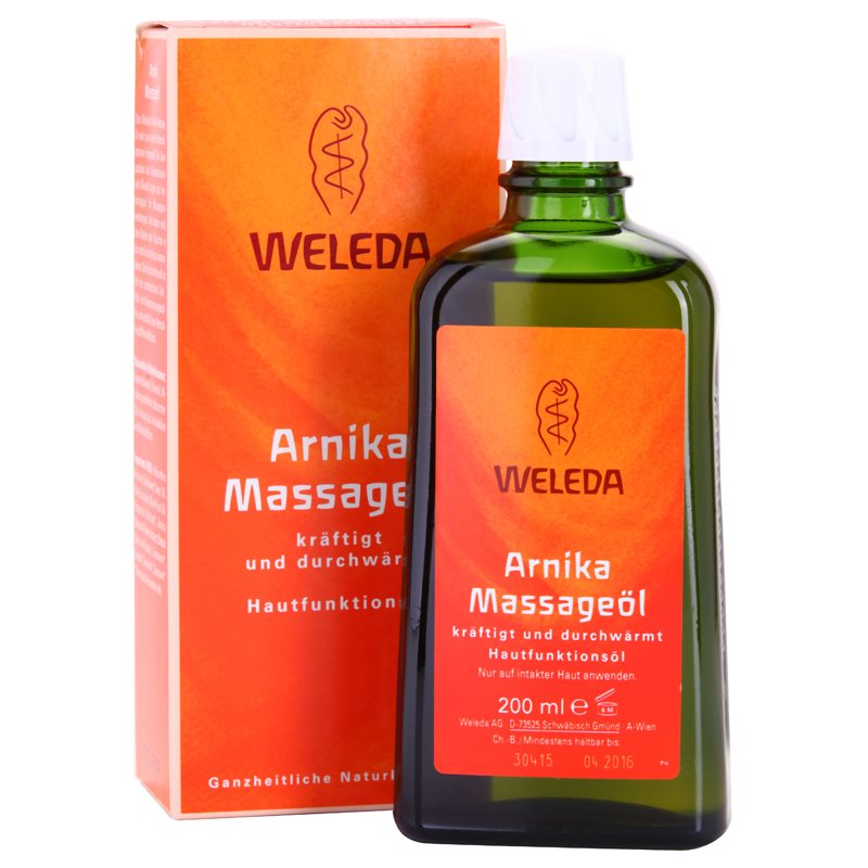 Weleda Arnika, 200 ml, Regenerace a masáže pro ženy, Máte pocit, že vaše pokožka potřebuje něco víc, než jen péči poskytnutou mlékem či krémem? Tělový olej Weleda Arnika skvěle obohatí vaši pečující rutinu – pokožce dodá extra dávku výživy, podpoří její regeneraci a postará se také o její vyhlazení. Vlastnosti: zanechává pokožku pružnou a vláčnou vyživuje a pečuje o pokožku Složení: bez parfemace Jak používat: Malé množství oleje jemně vmasírujte do pokožky celého těla. Používejte ráno a/nebo večer po koupeli nebo po sprše.