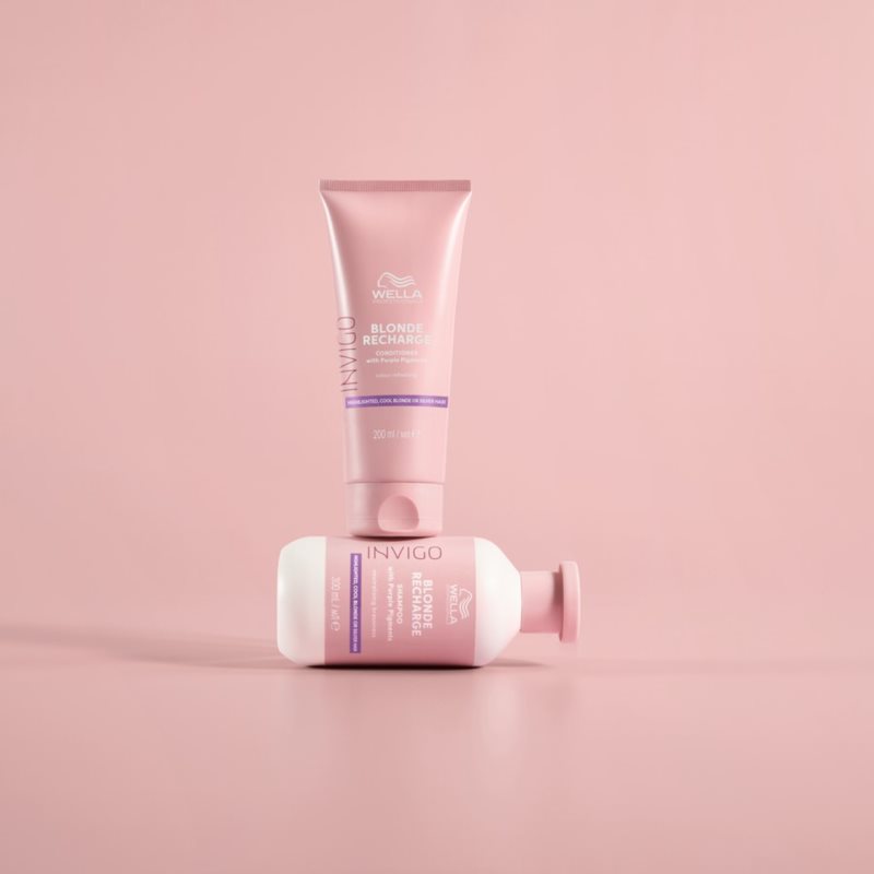 Wella Professionals Invigo Blonde Recharge, 200 ml, Tónovací šampony pro ženy, Při mytí vlasů šampon otevírá povrchovou vlasovou strukturu – kutikulu. Proto je důležité dodat po mytí vlasům péči, která kutikulu opět uzavře. A právě o to se postará kondicionér Wella Professionals Invigo Blonde Recharge. Kromě uzavření vlasových vláken zajistí jejich výživu, hydrataci a změkčení, bez čehož se krásné, lesklé a zdravé vlasy neobejdou. Ochrání je před mechanickým poškozením a vysušením, dále vyhladí jejich povrch a pomůže je zjemnit, což usnadní jejich rozčesávání a další úpravy. Vlastnosti: neutralizuje žluté tóny ve vlasech usnadňuje rozčesávání a následnou úpravu poskytuje potřebnou hydrataci prodlužuje trvanlivost barvy zajišťuje vlasům oslnivý lesk Jak používat: Aplikujte na šamponem umyté vlasy. Nechte působit uvedený počet minut: 3-5 minut. Poté důkladně opláchněte vodou.